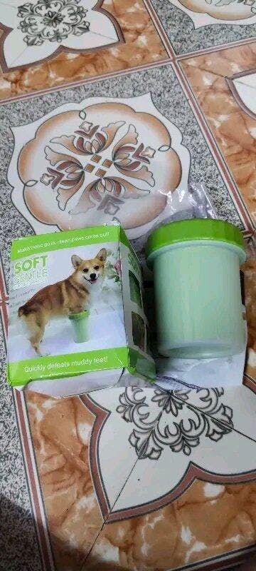 Easy 4-Step Use: Add water, insert paw, rotate to clean, dry with towel and discard water—before/after photos show sparkling results.