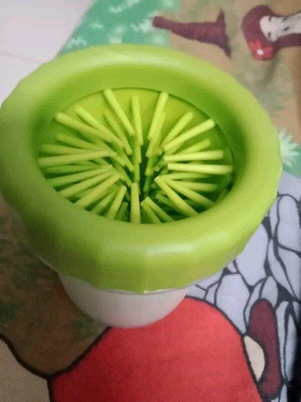 Cleaner offers effortless cleaning for your pet's muddy paws after walks or playtime. This portable blue silicone cup features 360° soft bristles that scrub dirt, mud, and grime while massaging paws, suitable for small to medium dogs and cats.
